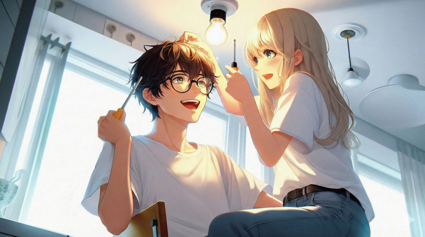 —Estamos haciendo la mudanza a tu antigua casa. Tú que sabes de electricidad, ¿por qué no me ayudas a desmontar y montar las lámparas?